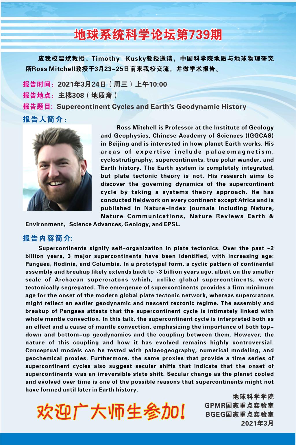 【3月24日】中国科公司地质与地球物理研究所Ross Mitchell教授学术报告